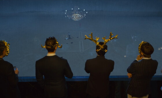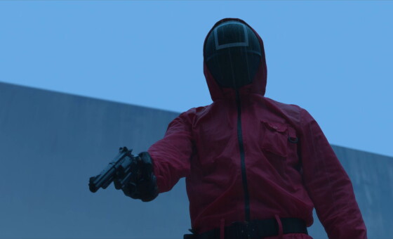 Впереди последнее, шестое испытание, которое так и называется «Игра в кальмара». Это старинная корейская забава, в которую обычно играют детишки на улицах. Влиятельные персоны в красивых масках ставят деньги на финальную игру и в компании Распорядителя готовятся наблюдать за процессом. Человек в маске объясняет своим ВИП-гостям правила этой детской забавы.Сон и Санг-ву поднимаются на лифте в помещение для последнего испытания. Охранник говорит, что сначала необходимо определиться, кто будет атаковать, а кто – защищаться. Сон выбирает треугольник, и сотрудник подкидывает необычную монетку. Действительно, выпадает треугольник, а значит, именно номеру 456 нужно выбирать первым. Сон говорит, что хочет атаковать, поэтому Сан У придется защищаться.